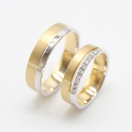 18k gouden koppel trouwringen met 0,14ct diamanten
